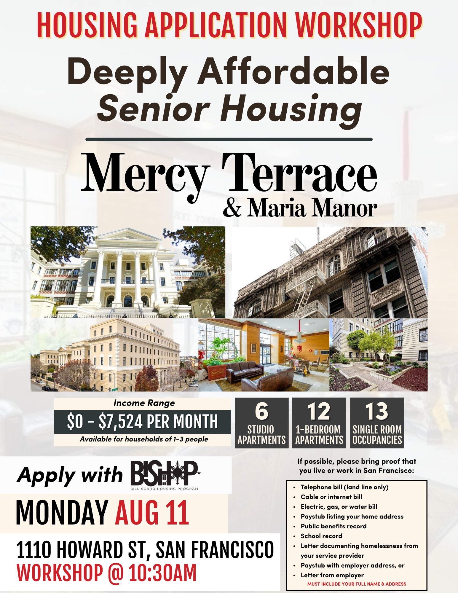 Where: Bill Sorro Housing Program (1338 Mission St. 3F)
